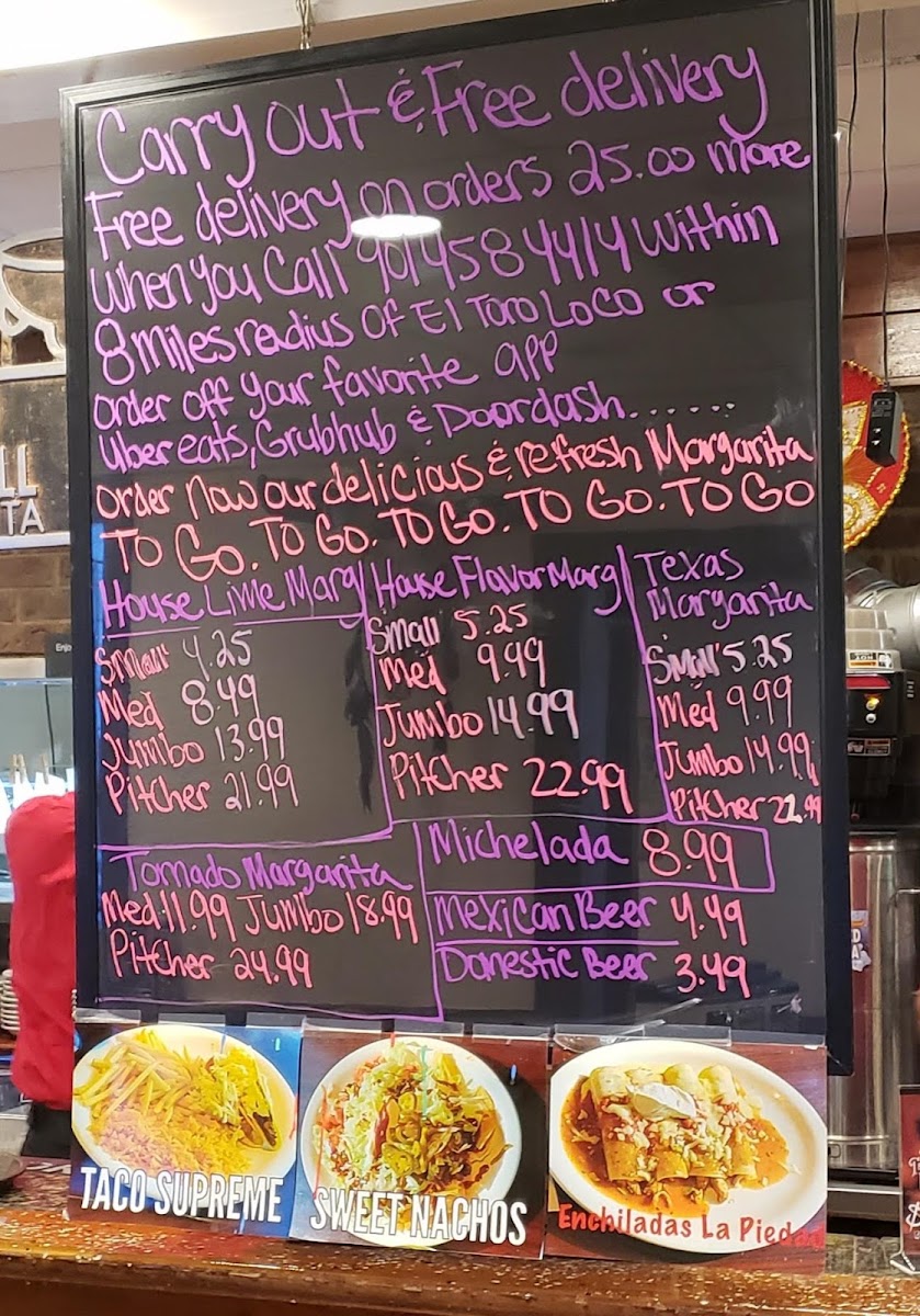 Customer reviews echo a consistent theme: delicious food, generous portions, and efficient service. Patrons like Sherrie and Sergio rave about the freshness and flavor, highlighting the restaurant’s commitment to quality. Whether you're dining in or opting for delivery, El Toro Loco is ready to provide a great Mexican dining experience in an inviting atmosphere.