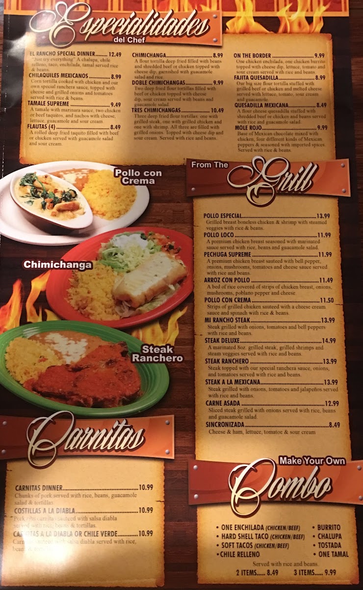 Don't miss the Especialidad del Chef—a standout plate that combines a chicken enchilada and burrito, draped in rich cheese dip with fresh toppings, served alongside a hearty side of rice and beans. For those seeking that perfect crunch, the Chimichanga delivers with its fried tortilla stuffed with savory fillings, promising comfort in every bite.
